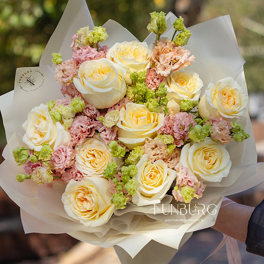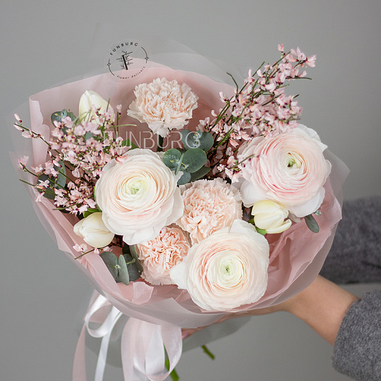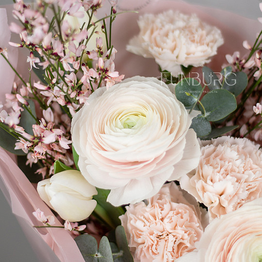 У нас есть также широкий ассортимент цветов и растений для букетов: пионовидные розы, ранункулюсы, гипсофила, гортензия, пионы, лаванда, альстромерия, кустовая роза, герберы, орхидеи, лилии, гвоздика, тюльпаны хризантемы, розовая роза, желтая роза и другие цветы.