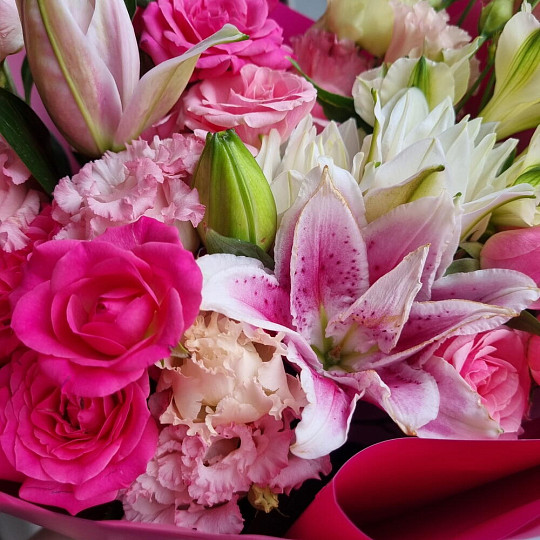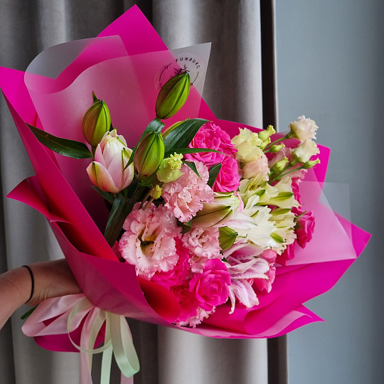 У нас есть также широкий ассортимент цветов и растений для букетов: пионовидные розы, ранункулюсы, гипсофила, гортензия, пионы, лаванда, альстромерия, кустовая роза, герберы, орхидеи, лилии, гвоздика, тюльпаны хризантемы, розовая роза, желтая роза и другие цветы.