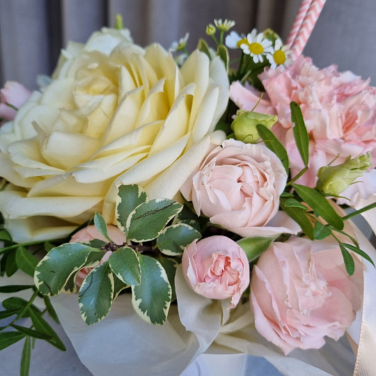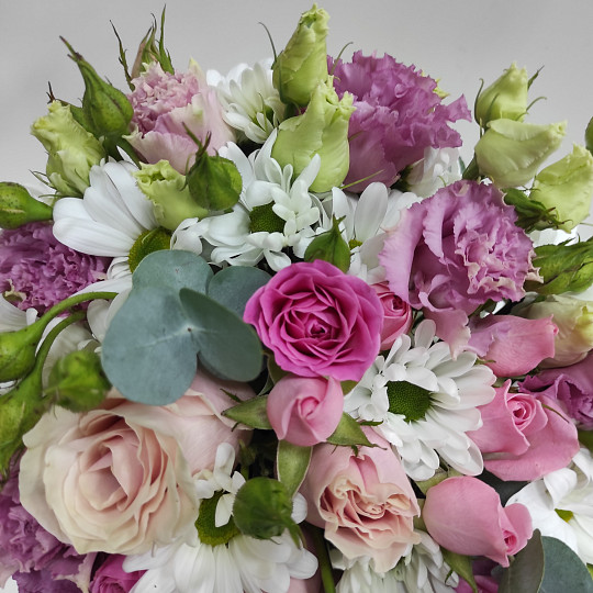 У нас есть также широкий ассортимент цветов и растений для букетов: пионовидные розы, ранункулюсы, гипсофила, гортензия, пионы, лаванда, альстромерия, кустовая роза, герберы, орхидеи, лилии, гвоздика, тюльпаны хризантемы, розовая роза, желтая роза и другие цветы.