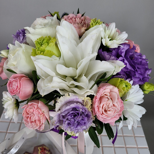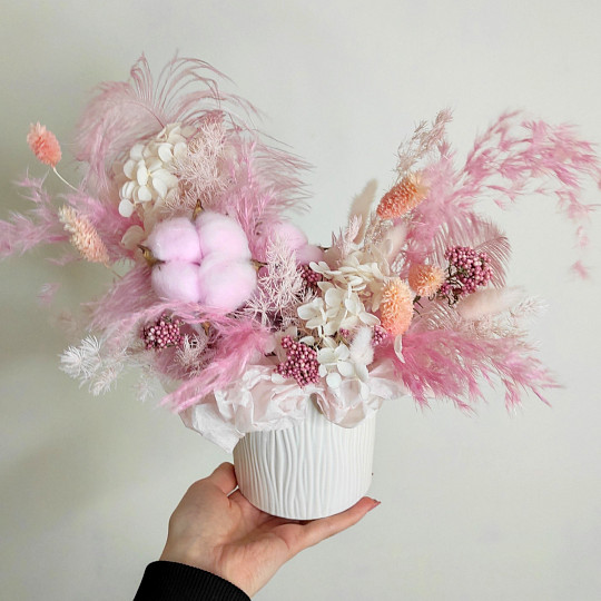 У нас есть также широкий ассортимент цветов и растений для букетов: пионовидные розы, ранункулюсы, гипсофила, гортензия, пионы, лаванда, альстромерия, кустовая роза, герберы, орхидеи, лилии, гвоздика, тюльпаны хризантемы, розовая роза, желтая роза и другие цветы.
