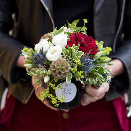 Бесплатная доставка. Букет понравится любителям романтики и необычных сочетаний.