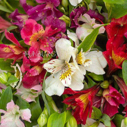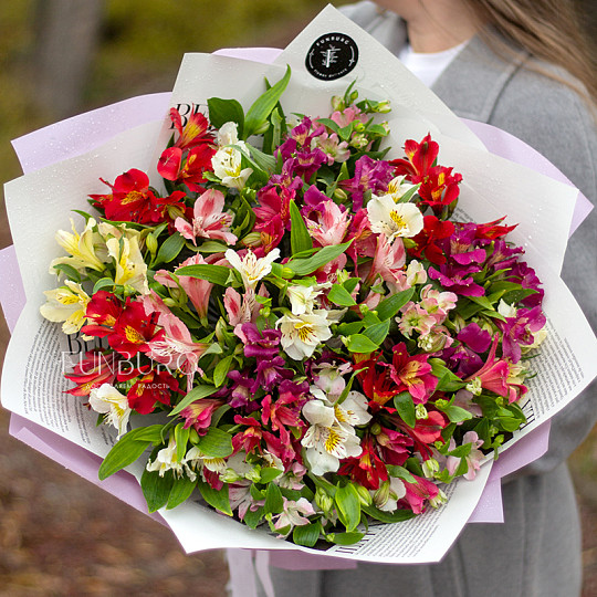 Идеальный букет для тех, кто очень любит экзотическую (но уже ставшую классической) и очень стойкую альстромерию
