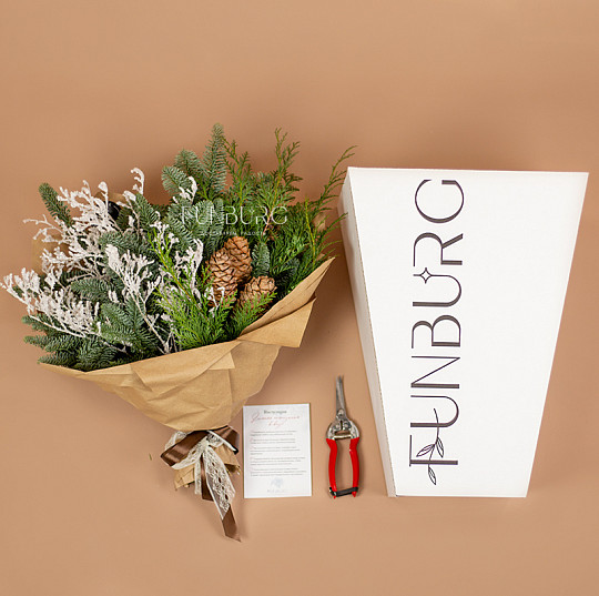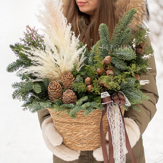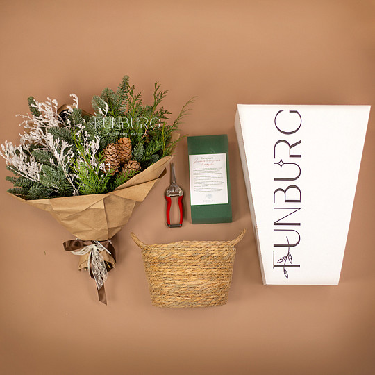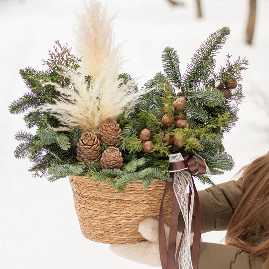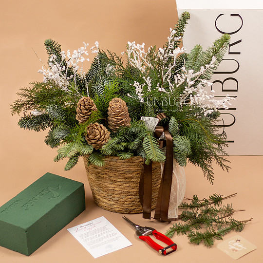 Состав: Нобилис, Туя, Кедровые шишки, Заснеженные веточки, Фирменная коробка