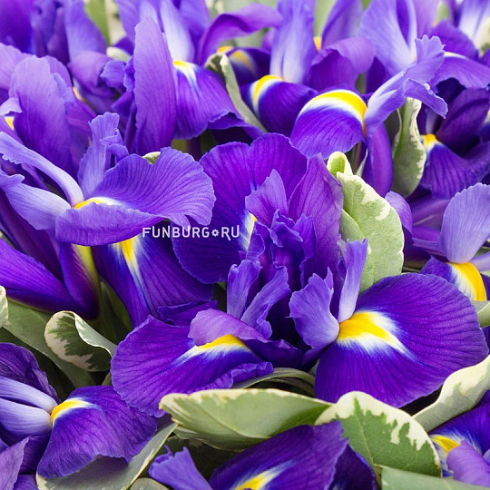 Состав: Ирисы, Герберы, Кустовые хризантемы, Солидаго, Рускус