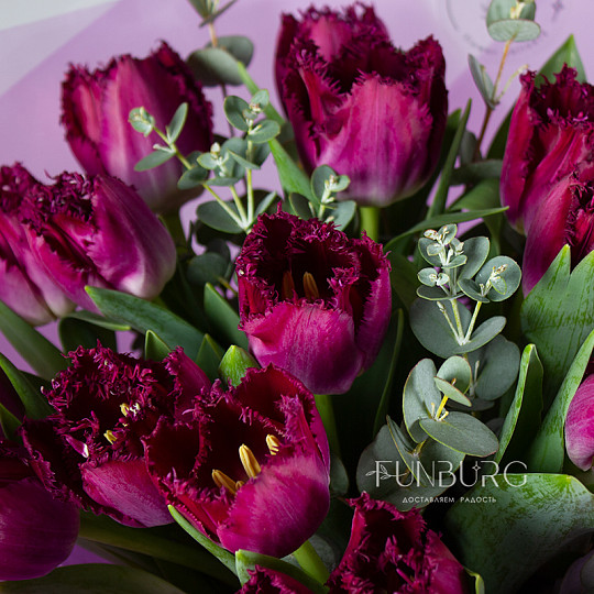 Состав: Амариллис, Розы (60 см), Тюльпаны, Эустома, Ваксфлауэр, Эвкалипт