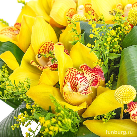Состав: Орхидея (ветка), Краспедия, Солидаго, Аспидистра