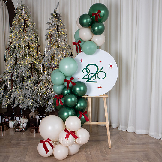 Состав: Аренда мольберта с кругом, Разнокалиберная гирлянда из шаров №5, Наклейка для фотозоны, Установка фотозоны, Демонтаж