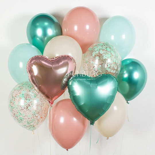 Состав: Латексный с конфетти, Воздушные шары «Chrome» (ассорти), Шар из фольги «Сердце с переливами (перламутр)», Из фольги без рисунка, Латексный без рисунка, Груз ручной работы (под цвет шариков), «Пакет для транспортировки» (стандартный)