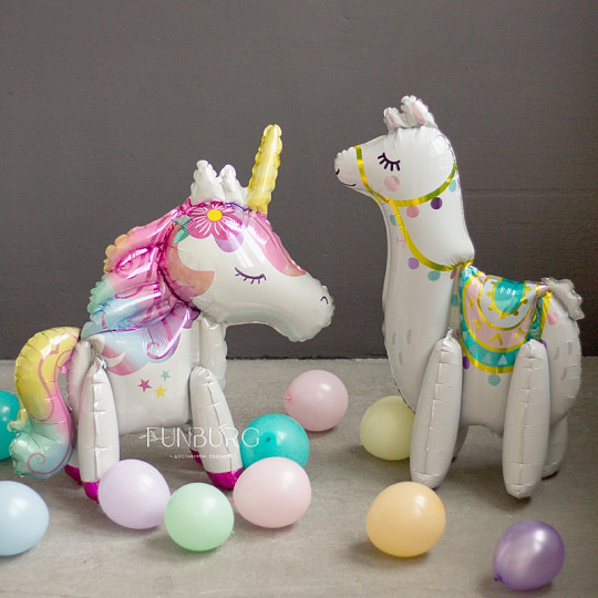 Состав: Шар из фольги «Happy Birthday» (Нарвал и Русалочка), Маленький латексный шар 5" с воздухом, Коробка для шаров 51*37*42