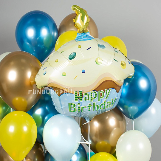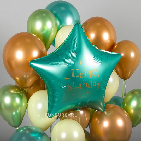 Состав: Шар из фольги «Happy Birthday» (яркий взрыв), Латексный с конфетти, Из фольги без рисунка, Воздушные шары «Chrome» (ассорти), Латексный без рисунка, Груз ручной работы (под цвет шариков), «Пакет для транспортировки» (большой)