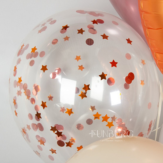Состав: Воздушные шары «Chrome» (ассорти), Латексный с конфетти, Из фольги без рисунка, Воздушные шары «Супер Агаты», Латексный без рисунка, Груз ручной работы (под цвет шариков), «Пакет для транспортировки» (стандартный)