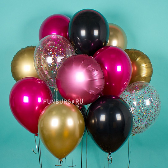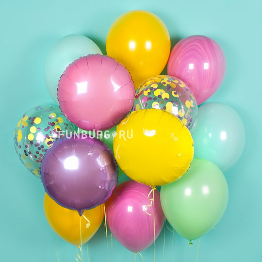 Состав: Воздушные шары «Chrome» (ассорти), Латексный с конфетти, Из фольги без рисунка, Воздушные шары «Супер Агаты», Латексный без рисунка, Груз ручной работы (под цвет шариков), «Пакет для транспортировки» (стандартный)