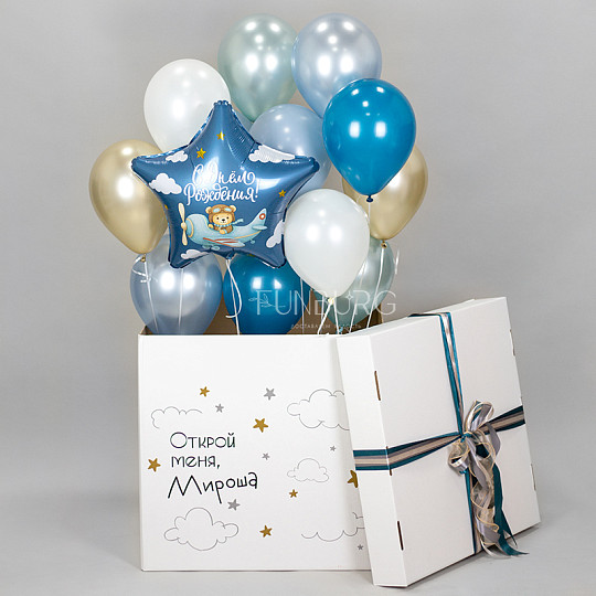 Состав: Шарик из фольги «С днём рождения!» (самолёт), Маленький латексный шар 9" Silk, Маленький латексный шар 9", Коробка для шаров 60×60×60