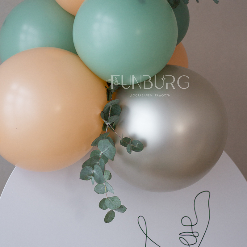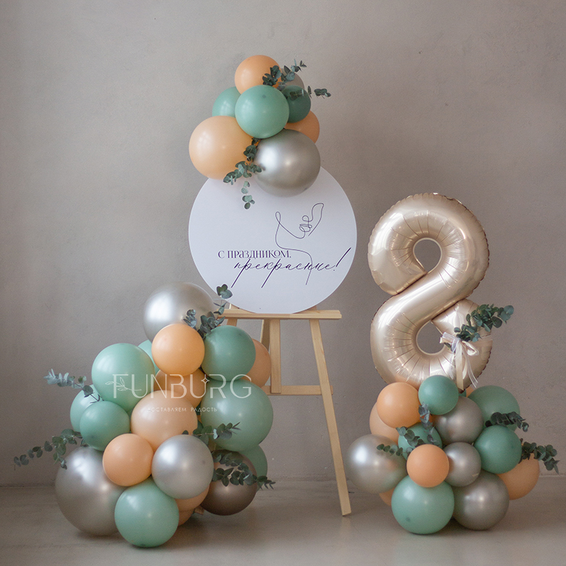 Состав фотозоны вы можете редактировать самостоятельно по своему желанию, а гирлянда из шаров может быть выполнена в любой цветовой гамме и стилистике торжества: просто подробно опишите нам все особенности, а мы подберем необходимые шарики, декор, согласуем все детали с вами и воплотим идею в жизнь!