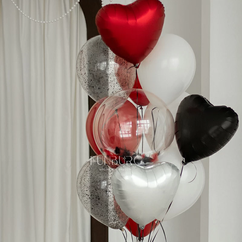 Эффектное сердце можно дополнить необычной связкой шариков, как в нашем примере, или подобрать свою!