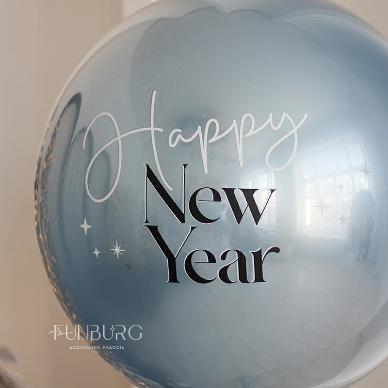 Надпись на шаре мы можем изменить по вашему желанию, как и цветовую гамму оформления шара.