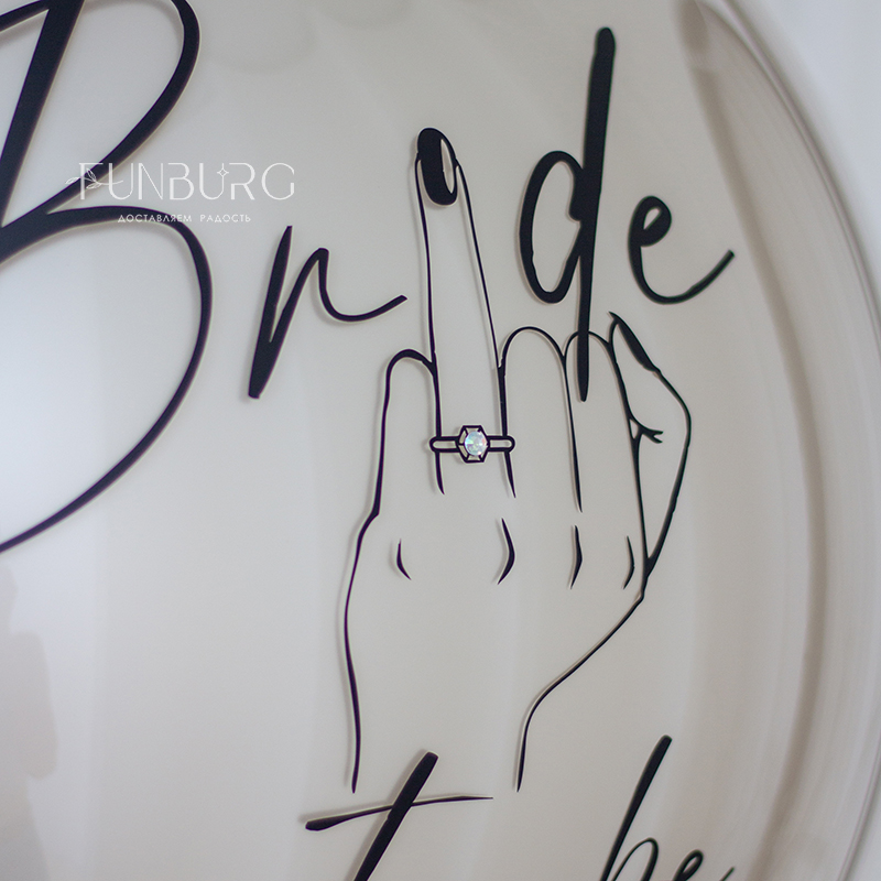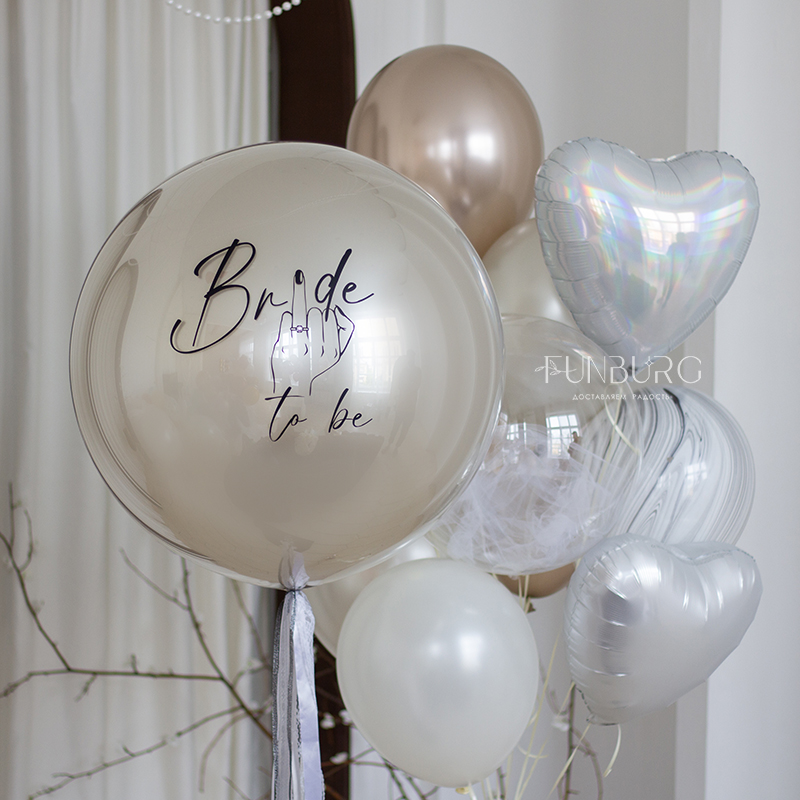 Большой красивый зеркально-глянцевый шар жемчужного мерцающего оттенка с хулиганской надписью и декором идеально подойдет для девичника! Изящную картинку с кольцом мы дополнили переливающимся, словно бриллиант, камушком, и эта маленькая деталь придает шару особую изюминку и шик! Надпись, как и декор, при желании можно изменить.