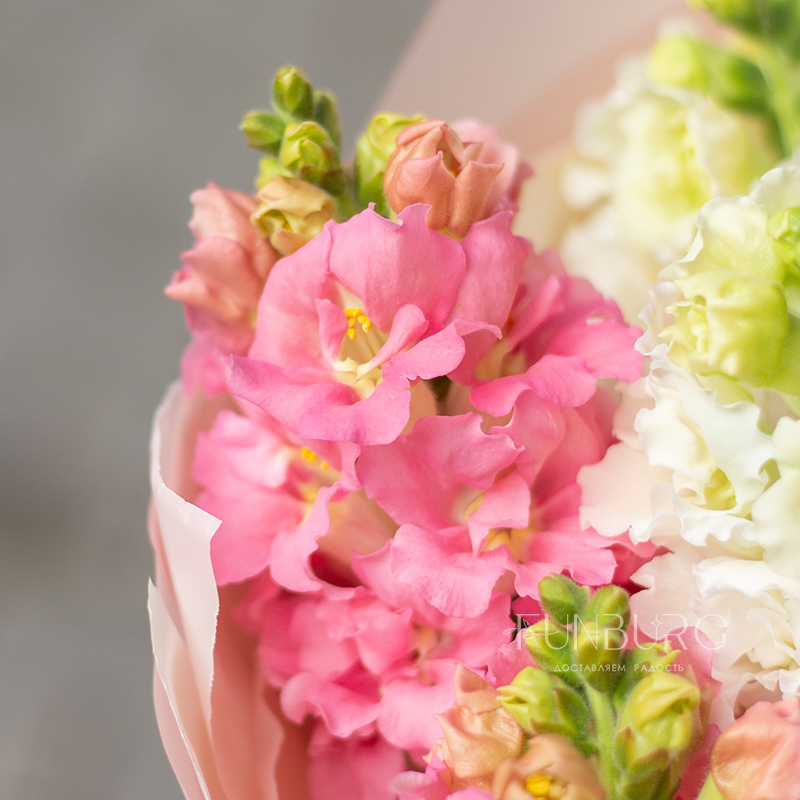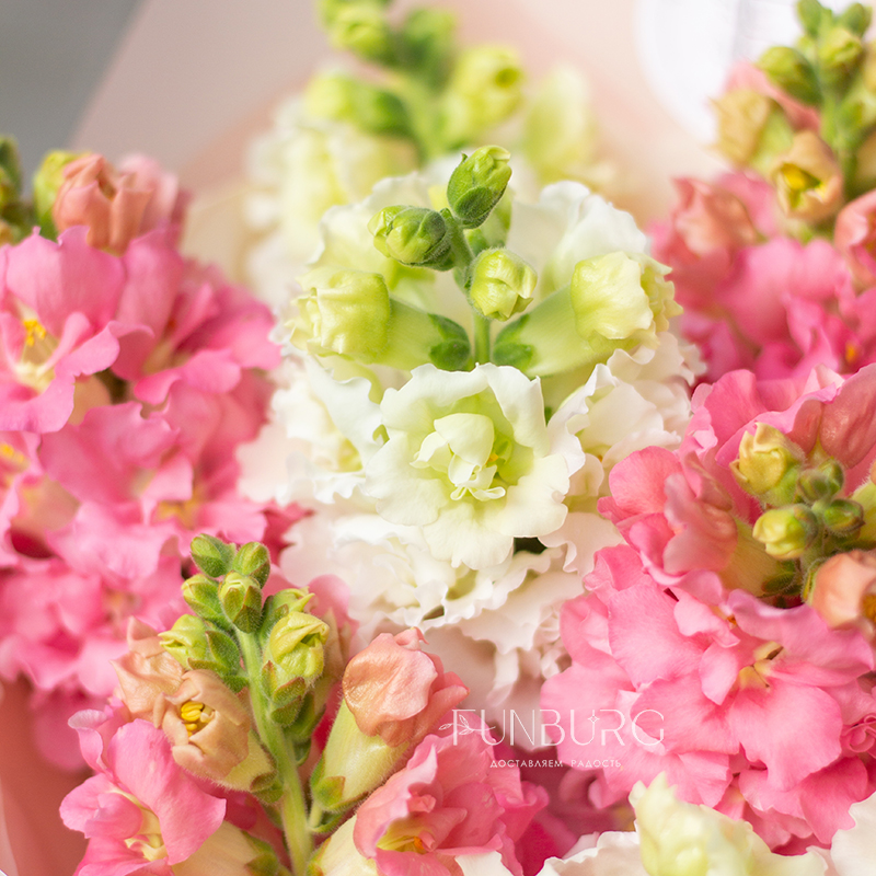 Букет леденцово-розового и белого антирринума с волшебным цветочным ароматом создан дарить летнее настроение и передавать вашу заботу и любовь.
