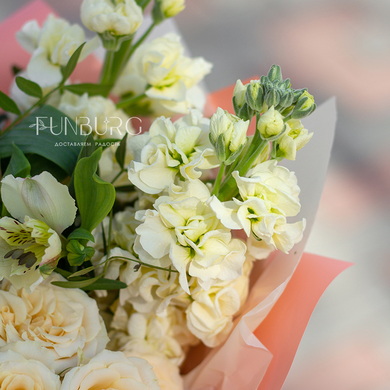 К каждому букету мы бесплатно добавляем специальную подкормку для продления жизни цветов. Добавьте ее в вазу с водой по инструкции, и цветы будут радовать вас дольше.