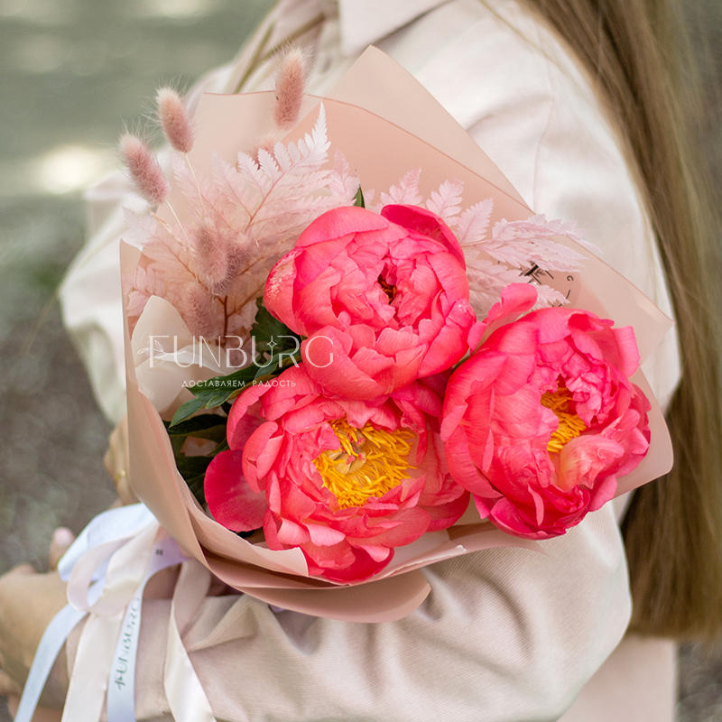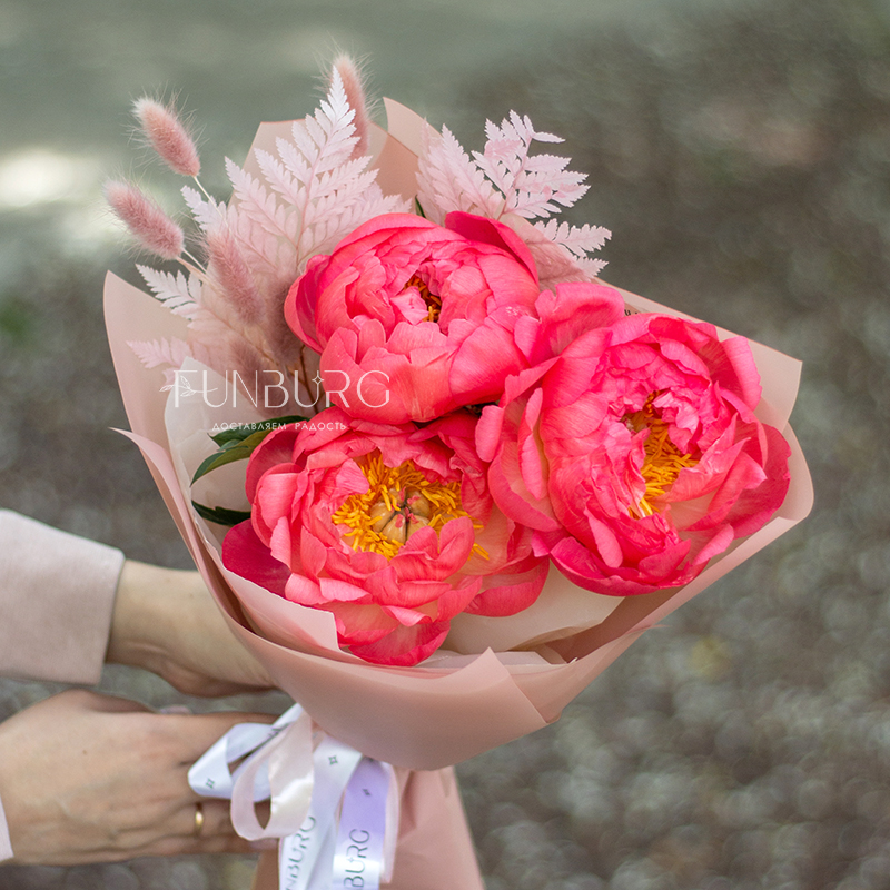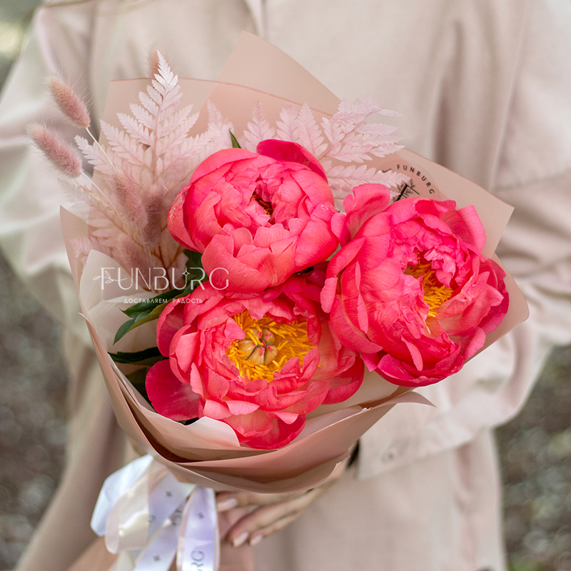 Чтобы насладиться магией коралловых пионов Coral Charm, не обязательно заказывать необъятный букет – даже нескольких штук этих необычных пионов с добавлением очаровательных сухоцветов в лаконичной упаковке достаточно, чтобы понаблюдать за настоящим волшебством: в течение нескольких дней яркие коралловые бутоны раскрываются и становятся нежно-персиковыми! Магия ближе, чем кажется ;)