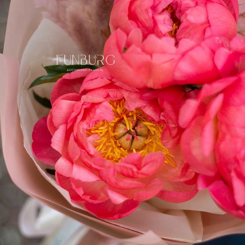 Букет пионов «Земляничный поцелуй»