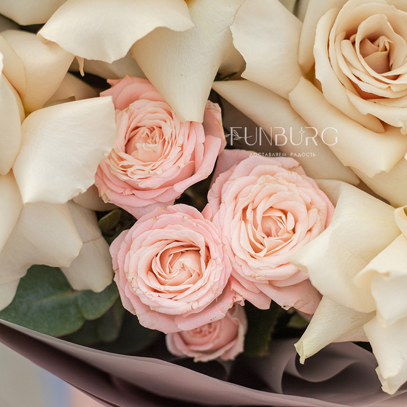 Дуобукет из французских и пионовидных роз