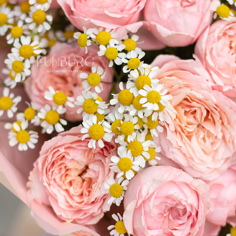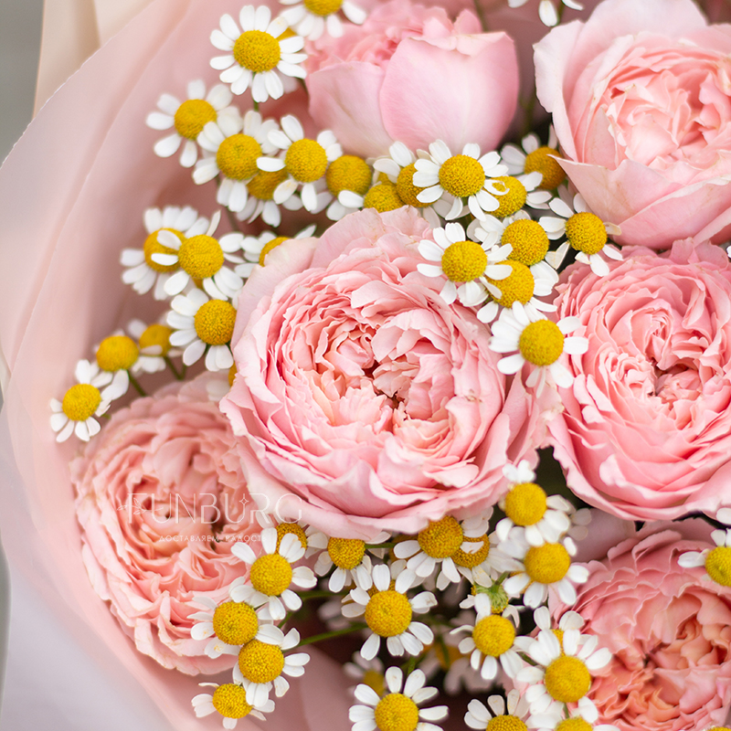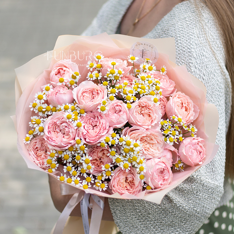 Дуобукет из ромашек и пионовидных роз Джульетта