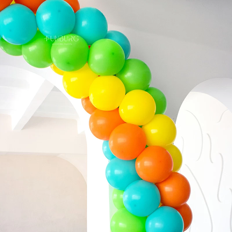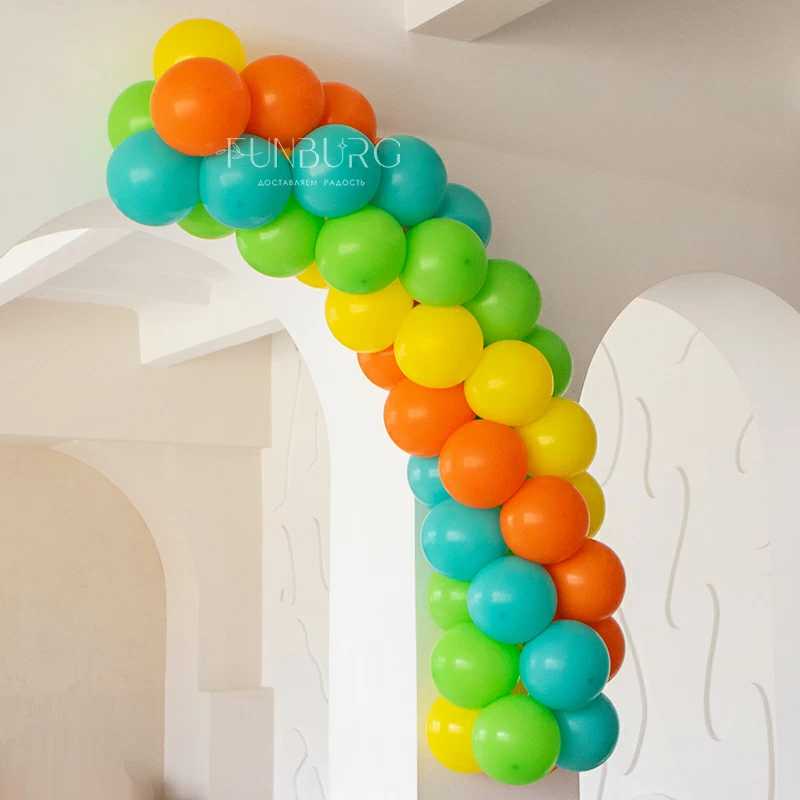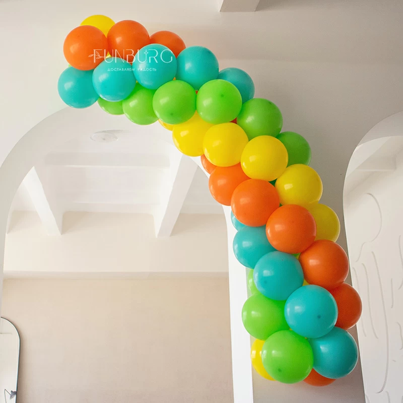 Классическая витая гирлянда из воздушных шаров одного размера отлично подойдет не только для оформления входной группы организации, но и для корпоративного мероприятия или детского праздника. Цвет гирлянды может быть любым - просто сообщите нам желаемую цветовую гамму при оформлении заказа.