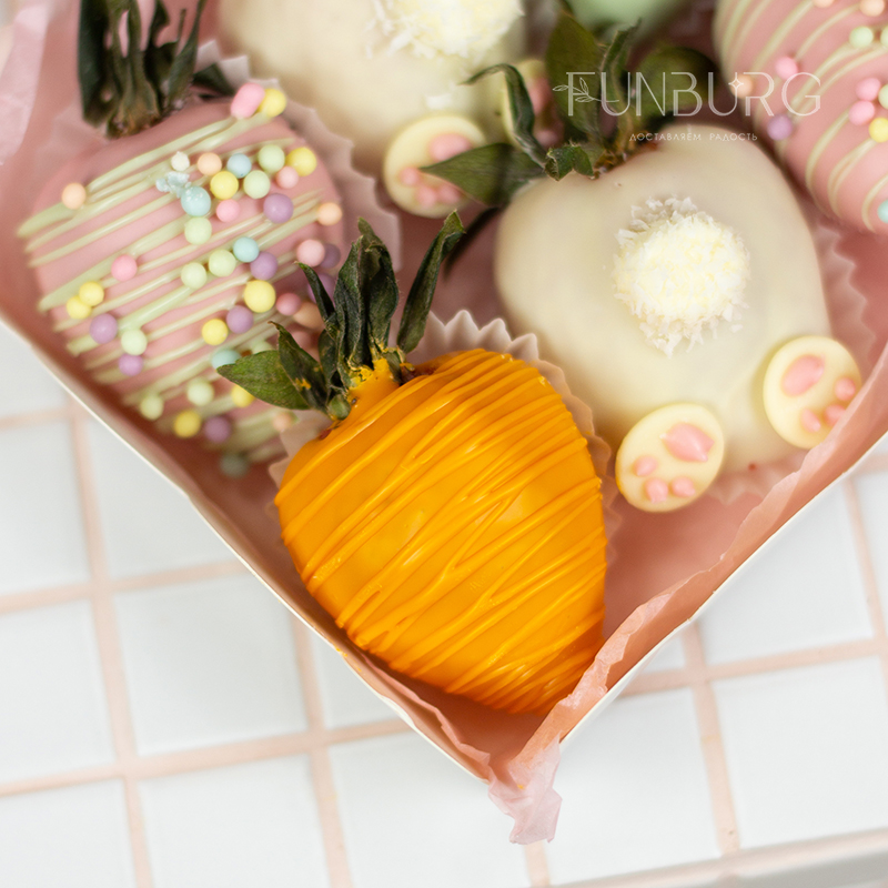 Наш самый милый и забавный набор клубники в шоколаде! В нем пастельные сливочные оттенки, четярые вида шоколада, разноцветная посыпка, клубнички в виде зайчиков, морковок и пасхальных яиц! Не поддаться очарованию просто невозможно! Идеально для подарка на Пасху!