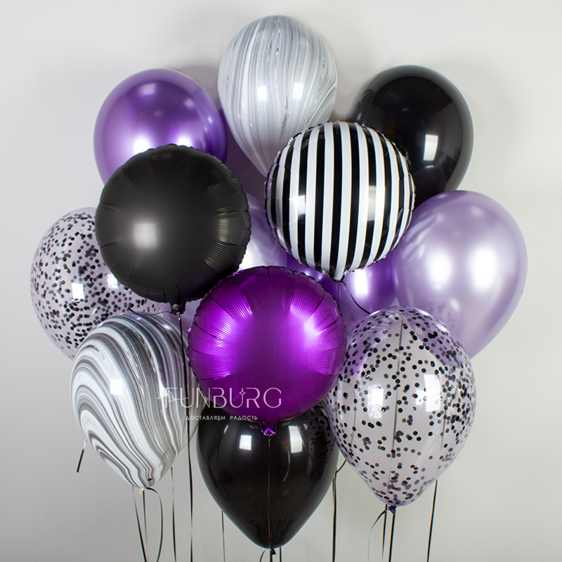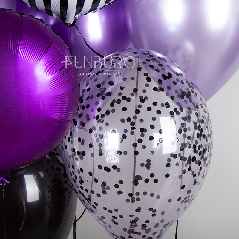 Загадочное, таинственное и невероятно стильное сочетание фиолетового, мерцающего сиреневого, переливающегося черно-белого, контраста черных и белых полосок, мистического черного. Идеально для любителей фиолетового и цветовых сочетаний с ним, а также для украшения Хэллоуина и других тематических праздников.