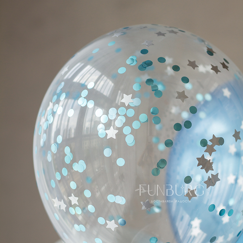 Готовый стильный набор для украшения праздника или подарка на день рождения! Красивая сатиновая цифра 4 в форме забавной акулы и тематическая связка шариков под цвет, с стеклянным шаром с поздравлением (надпись можно сделать любой), кругами из фольги и шариками с конфетти.