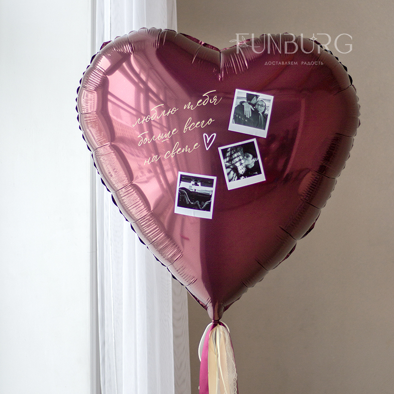 Большое сердце красивого насыщенного вишнёвого оттенка создано для того, чтобы сказать любимым о самых глубоких чувствах! Сердце мы декорировали уникальным украшением в виде ваших фотографий (фотографии необходимо будет отправить нам на почту mail@funburg.ru), придумали дизайн, а вам остается только выбрать из своего фотоархива самые ценные и подходящие снимки, придумать надпись (или использовать наш пример) - идеальный подарок любимым готов!