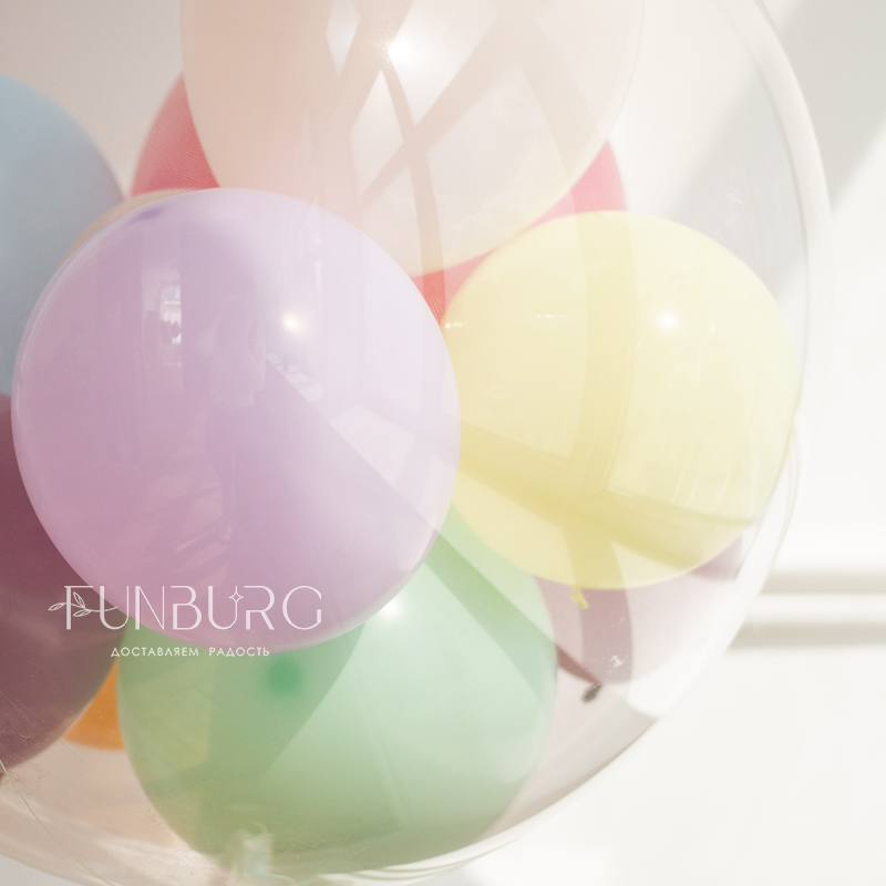 Идеально-круглый, глянцевый, из тонкого кристально прозрачного пластика, этот шарик очень похож на мыльный пузырь только с разноцветными шариками внутри! Такие шарики подойдут для стильного лаконичного, но в то же время яркого, оформления праздника. Даже без надписей, только с декором из разноцветных ленточек в тон шариков внутри bubble выглядит невероятно эффектно! Цвет шариков мы можем изменить по вашему желанию.