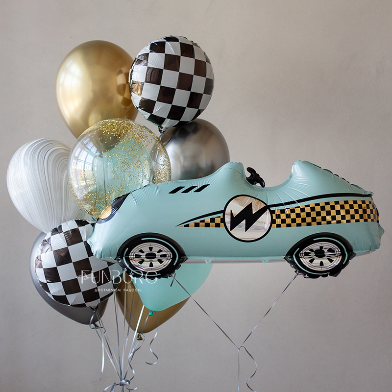 Большая объемная сверкающая бирюзово-голубая гоночная машина для любителей автомобилей и Формулы 1.