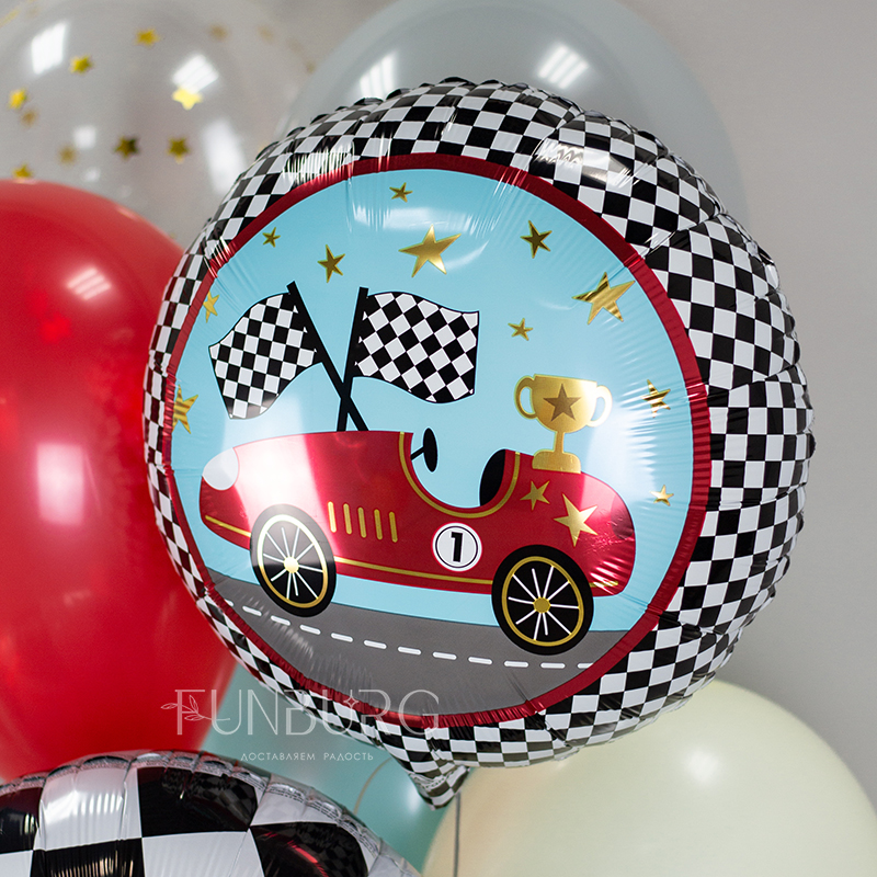 Шарик из фольги «Гоночные машинки» (ретро)