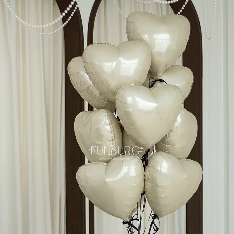 Лаконичная связка из сердец красивого жемчужно-кремового оттенка, перевязанная для завершенности и особого шарма атласными лентами, отлично подойдет для подарка самым любимым и лаконичного украшения пространства для особенных случаев. Каждое сердец перевязано атласным бантом, но при желании вы можете убрать бантики из состава связки.