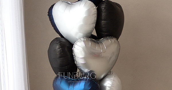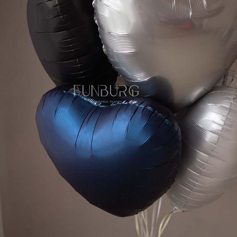 Небольшая гармоничная связка из сатиновых сердец насыщенного тёмно-синего, мерцающего белого, серебристого и сатинового чёрного, перевязанная для завершенности и особого шарма атласными лентами, отлично подойдет для подарка самым любимым и лаконичного украшения пространства для особенных случаев.