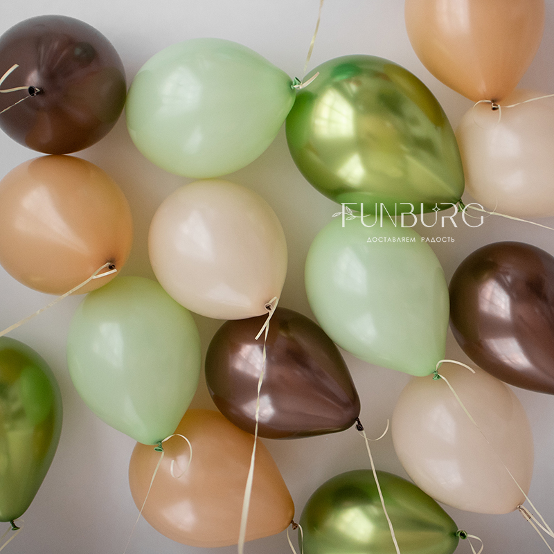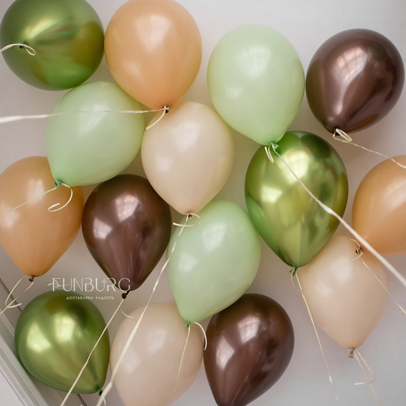 Шарики под потолок в уютных и модных оттенках фисташкового, шоколадного и кремового идеально подойдут для украшения праздника! Вы можете выбрать любое количество шариков, исходя из размера комнаты (количество, например, можно определить из расчета 4 шара на 1 квадратный метр), которую нежно ими украсить, а еще шарики можно дополнить красивым блестящим дождиком или бантиками.