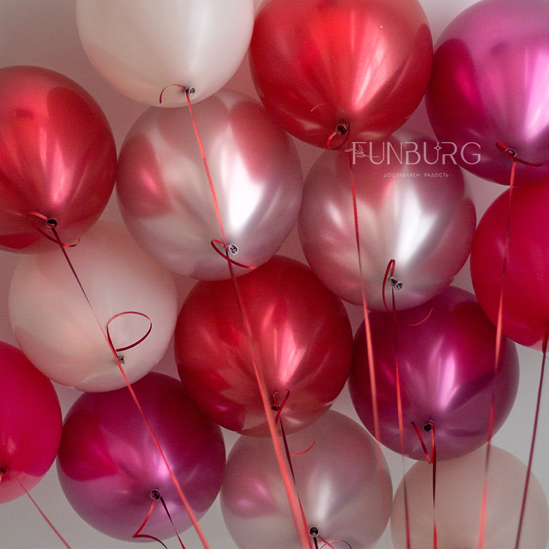 Шарики под потолок в ярких и нежных оттенках розового и красного идеально подойдут для украшения праздника! Вы можете выбрать любое количество шариков, исходя из размера комнаты (количество, например, можно определить из расчета 4 шара на 1 квадратный метр), которую нежно ими украсить, а еще шарики можно дополнить красивым блестящим дождиком или бантиками.