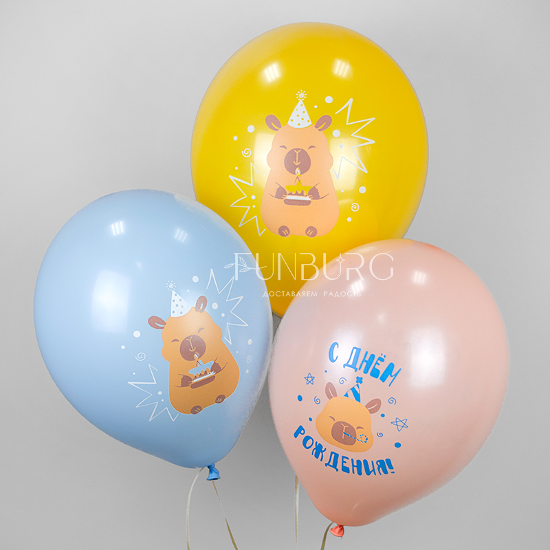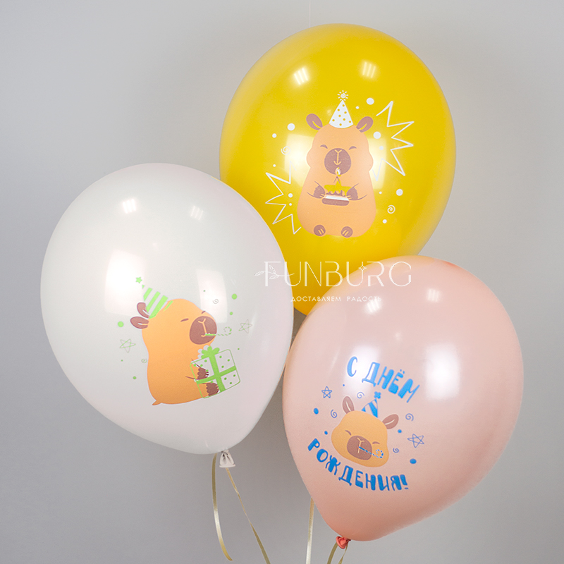 Воздушные шары «С днём рождения!» (капибары)